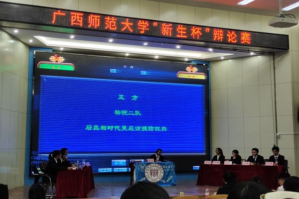 学院新闻为庆祝二十大胜利召开,青春献礼二十大,丰富新生的校园生活,增进各学院之间的交流合作,10月30日下午,广西师范大学辩论协会(育才校区)联合四学院学生会共同举办新生辩论赛,当天在育才校区大学生学术报告厅圆满结束。我院22级辩论二队不畏强手,从十支参赛队伍的比拼中脱颖而出,摘得此次育才校区22级新生辩论赛桂冠。