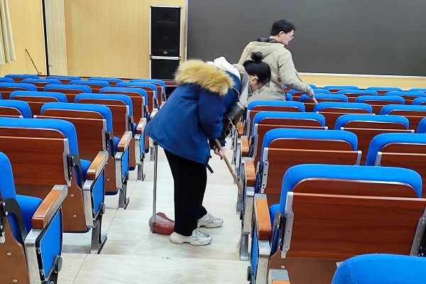 12月3日清扫学院各类会议、活动的高频使用场地——阶梯教室,创造了舒适卫生的环境,组织党员开展“卫生清扫 党员先行”志愿服务活动,增加了党员之间的交流与组织凝聚力。
