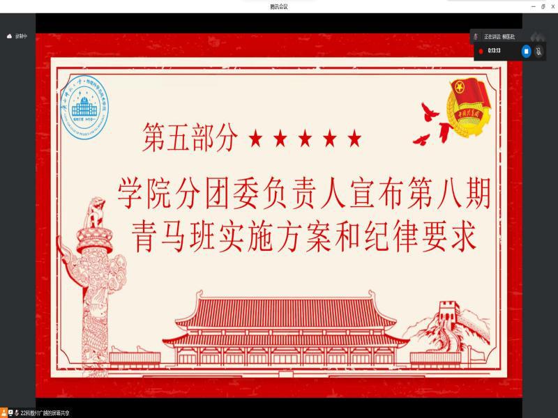 团委主要负责人详细解读了“青马班”的实施方案以及纪律要求,让第八期“青马班”的同学们对于培养方案有了更加深入的了解,为同学们更快的融入将来的学习生活中做了铺垫。