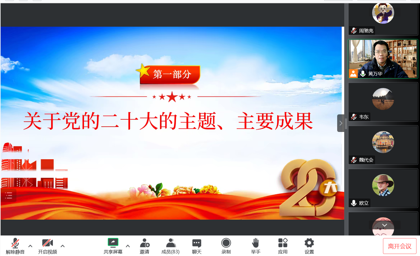 学院党委书记黄万华强调,要深刻领悟“两个确立”的决定性意义,增强“四个意识”、坚定“四个自信”、做到“两个维护”,做到知信行统一,把党的二十大精神全面落实到学院工作各方面全过程。我们要提高政治站位,深化思想认识,狠抓工作落实,以党的二十大精神为指引,不断推动物理学院各项工作高质量发展。
