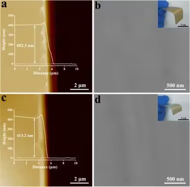 实验结果表明,通过物理热蒸发技术可精确控制合成的3D COFs薄膜厚度、且薄膜表面平滑致密、结晶度较高(图2)。