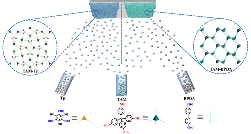 图1. 物理热蒸发技术制备3D COFs示意图。