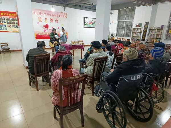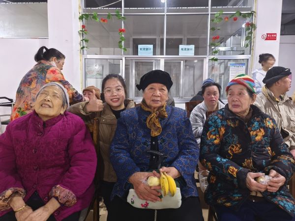 当天上午,志愿者们步行至七星区聚福缘敬老院,在与敬老院负责人确认任务和注意事项后,志愿者们来到大厅,为老人们表演精心编排的节目。大合唱《我和我的祖国》慷慨激昂,朗诵抑扬顿挫,吉他演奏旋律动听、极具感染,《少年中国说》展现了志愿者们的磅礴朝气......一个个精彩的节目引老人们也想一展歌喉,人已步履蹒跚,但歌却铿锵有力。老人们和蔼可亲的笑容、溢于言表的喜悦给志愿者们带来了鼓舞与感动。
