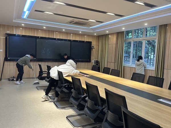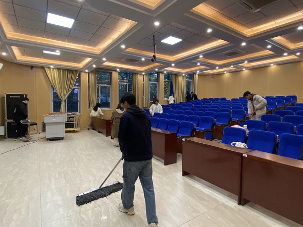 支部全体党员对物理学院党员活动室、会议室、物理实验楼机控室和阶梯教室进行劳动卫生清洁活动。各位党员同志不怕脏、不怕累,拿起自带的扫帚、垃圾铲以及抹布等清洁工具,对实验楼阶梯教室、机控室等地进行清洁,将纸屑、垃圾袋等一一清理,并将党员活动室中的物品有序摆放。在支部成员的共同努力下,党员活动室焕然一新,得到了师生的一致好评。