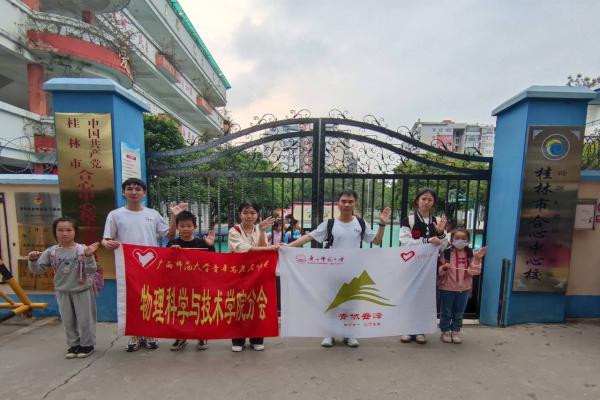 学生活动为使广大同学将理论运用于实践,服务奉献于社会,推动广大学生在实践活动中接受多方面的教育,提高自我能力,为社会做出贡献,以及增强孩子们对物理世界的兴趣,让孩子们在玩中学习到知识,2023年4月12日下午,广西师范大学青年志愿者协会物理分会云峰支教团队(以下简称云峰支教团队)携手前往桂林市七星区合心中心校开展主题为“科技走进课堂,智慧改造生活”周支教活动。