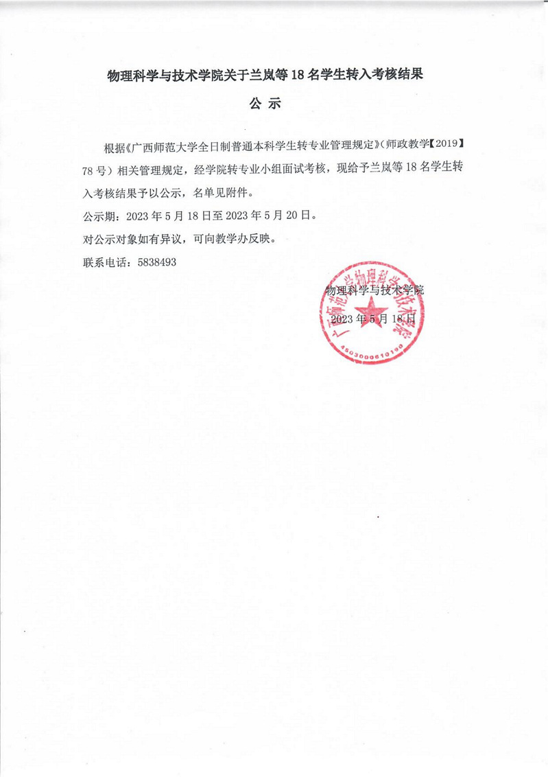 现将必一·运动(B-Sports)官方网站与技术学院关于兰岚等18名学生转入考核结果,公示如下。