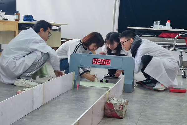 5月13日上午,我们开展了本次科技文化节之基础教具制作大赛的第一个项目——原电池小车项目。参赛选手热情高涨,提前到达比赛场地做好准备。制作过程中,参赛选手们都认真计算配比电解液,制作出各种各样的电池。在比赛过程中,激动人心的时刻更多。有一些小车走到一半就停滞不前了,选手们会抓紧时间抢修,争取在150秒内跑出最好的成绩。每一辆小车冲破终点线,每一次记录的刷新都会引起场上的阵阵欢呼。