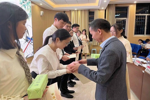 最后,由两位主持人宣布获奖名单。参赛同学们全力以赴,赛出风采,赛出水平,其中付广越、张清清、熊瑞琪三位选手获得一等奖,姜鑫乐等九位选手获得二等奖,罗婧等十位选手获得三等奖。老师们为他们颁奖,赠予他们最好的期望。活动最后,老师与参赛学生合影留念,本次活动圆满落下帷幕!