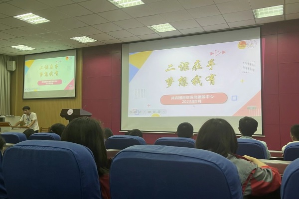学生活动为促进大学生第二课堂发展,提高大学生素质,2023年10月13日晚共青团青年服务发展中心在育才校区第二理科综合楼111阶梯教室举办共青团“第二课堂”成绩单制度宣讲会,我院2023级全体新生参加此次宣讲会。