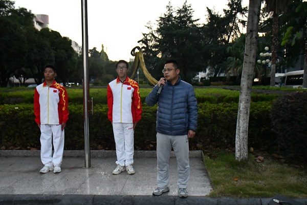 升旗仪式上,学院党委副书记韦东进行国旗下讲话,他提出,身心健康是确保莘莘学子在学习、生活道路中保持旺盛战斗力的关键因素。寒冬来袭,学生们应加强体育锻炼,注重身心健康。并强调学习的重要性和迫切性,号召学生们应珍惜来之不易的美好校园生活,加强自律,勤奋学习,尤其是加强作为安身立命之本的专业知识学习,自觉抵制手机诱惑,严格要求自己,不断提高自身的学习竞争力。