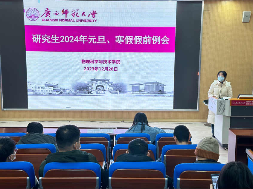在元旦假期和寒假来临之际,为进一步提高师生安全防范意识,切实维护师生财产安全,12月28日,必一·运动(B-Sports)官方网站与技术学院在育才校区召开研究生2024年元旦及寒假假前例会。会议由研究生辅导员主持,全体在校研究生参加会议。
