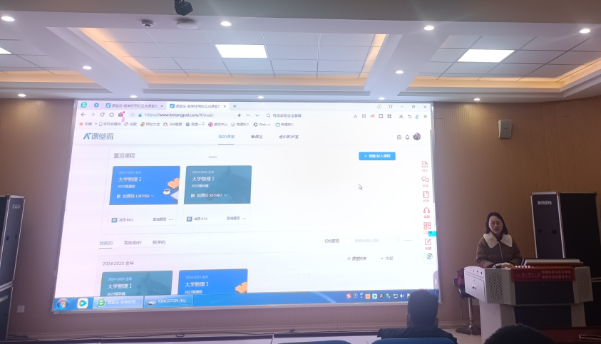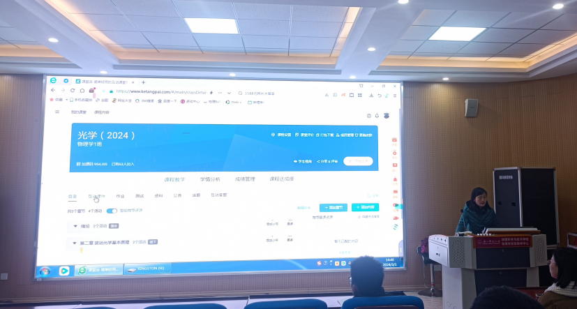 为全面提升教师利用信息技术开展过程性教学,进一步提升课程建设质量,2024年3月1日下午,学院在物理实验楼阶梯教室组织了“课程建设专题研讨会”,围绕“如何利用课堂派介入过程性评价”进行专题培训。研讨会由学院分管本科教学工作负责人主持,普通物理教研室张妙静教授和唐慧敏副教授主讲,学院30多位教师参加了此次培训研讨。