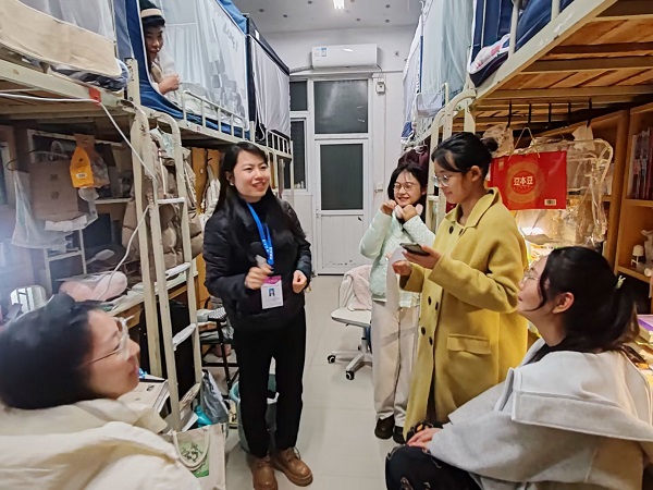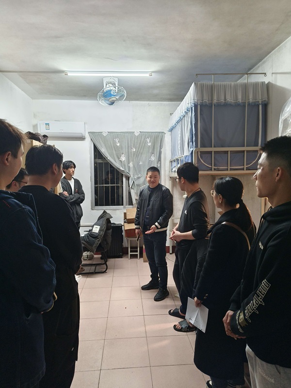 3月6日晚,学院党委副书记曹庆带领专兼职辅导员、学生干部分组走访宿舍,到学院学生所在的1舍、2舍、3舍、4舍、8舍、9舍、14舍、15舍等深入了解学生情况,听取学生反馈的问题,切实掌握学生思想动态,关心学生学习就业进展,排查宿舍安全隐患等。