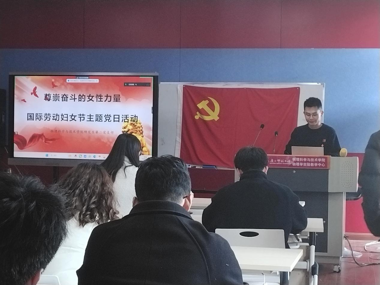 会上,党支部副书记带领全体党员学习国际劳动妇女节的历史背景、妇女的贡献与责任、党的政策支持和杰出女性代表,并且探讨国际劳动妇女节在历史上的重要意义。