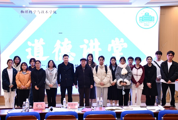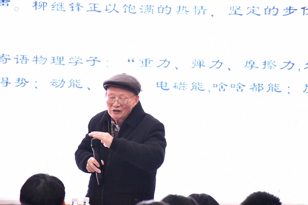 柳继锋教授以《立足壮乡 甘当人梯》为主题进行报告,首先,他指出“科学教育,持之以恒”,他结合自己的科研经历讲述了老一辈教育者教学创新,科研者科学创新的故事,激励学生们勇做新时代科研教育创新的排头兵;其次,他结合专业知识从微观粒子到宏观现象,从树上苹果到浩瀚宇宙,从中国现代科技到国外技术发展,诠释了什么是物理,为什么学物理,怎么用物理,帮助学生们明确学习目标,端正学习态度,树立学科自信;最后,他指出“路途遥远,心之所向,虽远莫阻”,他希望学生们要把个人的前途与国家的发展紧密结合,肩负起时代重任,到祖国最需要的地方去贡献力量。“太湖水哺育我长大,漓江水哺育我成长。我要对得起我的第一故乡浙江,更要对得起养育我的第二故乡广西,为广西的教育做点事,成为一架好梯子,帮助更多学生攀登科学的高峰。”柳继锋教授说道。