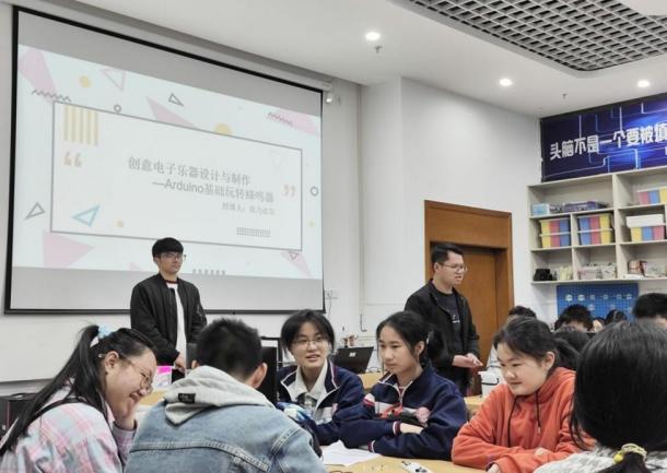 随后,师范生们来到人工智能教室,观摩学习主题为《基于Mixly软件与开源硬件》、《纸上光影——跨学科融合的纸雕灯》的常态化教学课堂,在课堂中,师大附中学生们展示了电子乐器和纸雕灯项目学习的成果,从他们落落大方地介绍作品的表现到分享学习过程的感悟,师范生们直观地感受到中学生在项目式学习过程的收获与成长,也引发了师范生们对项目式教学育人价值的思考。作为一种以任务为导向,促进学生综合素质提高的教学模式,师大附中以项目式学习为常态化教学模式的课堂取得的成果,为大家提供优秀的教育范本。
