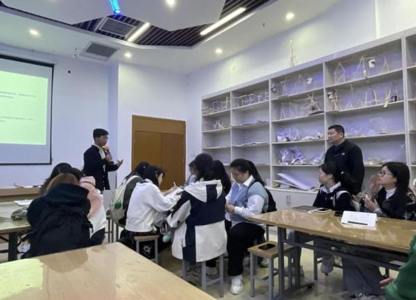首先,在科技展厅、创客空间和人工智能教室,师范生们看到了中学生丰富多样的创新作品模型,例如各式各样的抛石机、造型各异的足型机器人、琳琅满目的电子乐器、富有巧思的纸雕灯等。他们对中学生富有创意的想法和极强的动手能力所赞叹,充分感受到了广西师范大学附属中学在项目式教学中所投入的精力和取得的优秀成果。期间,李玉华老师给师范生们展示了历届前来附中进行顶岗实习的实践者们,他们都是科教专业的师兄师姐,李老师对予以充分的肯定,也对培养出优秀学生的广西师范大学表示衷心的感谢。张老师和李老师作为通用技术课程领域的探究者,各自分享自身实践的经验,希望在科学教育领域刚刚启程的师范生能够向优秀者看齐,再接再厉,为科学教育的春天做出贡献,形成星星之火燎原之势。