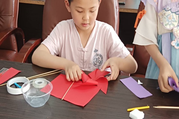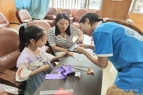 科普知识环节结束后,小朋友们耐心地听完主讲老师讲解制作风车的步骤,开始了期待已久的制作环节。制作水流飞沫小风车的环节中,小朋友们都认真地展开制作,遇到制作问题也积极向老师及家长求助,最后小朋友们都成功制作出了满意的水流飞沫风车。小朋友自主制作的过程增强了他们动手实践能力,激发了他们对科学知识的求知兴趣。