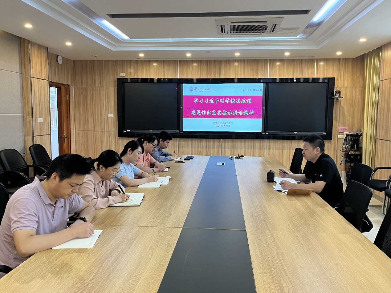 会议“第一议题”由学院党委相关负责人领学习近平总书记对学校思政课建设作出重要指示讲话精神。他强调,全体辅导员务必深入学习贯彻习近平总书记的重要指示精神,通过“学习强国”等多种平台深化理论学习,切实提高思想政治站位,不断增强政治觉悟;要坚定不移地坚守立德树人的初心和使命,以更高的标准履行新时代赋予的辅导员职责,着力建设成为一支政治强、情怀深、思维新、视野广、自律严、人格正的思政课教师队伍。