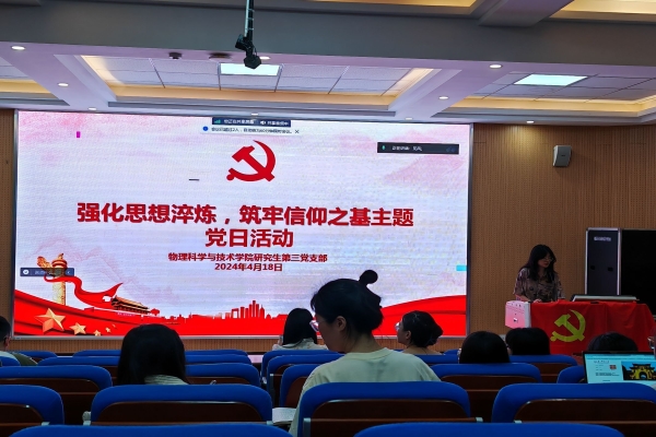 党建工作为深入学习贯彻落实党的二十大精神,推进全面从严治党,抓实抓紧抓好党风廉政建设,筑牢广大师生讲纪律、守规矩、知敬畏、明底线的思想防线,强化纪律规矩意识,2024年4月18日,必一·运动(B-Sports)官方网站与技术学院研究生第三党支部在育才校区物理实验楼阶梯教室召开“强化思想淬炼,筑牢信仰之基”主题党日活动。会议分为线上线下两种形式,支部全体党员参加会议,会议由党支部副书记陆丽欣同志主持。