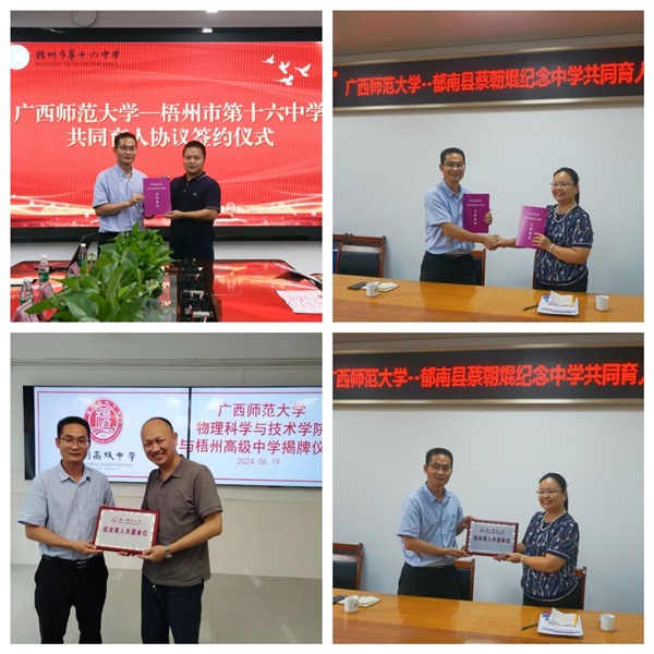通过此次访问,学院与多个用人单位达成了初步合作意向。在与会人员的见证下,授予梧州第十六中学、梧州高级中学、梧州教育局、广东郁南县蔡朝焜纪念中学“就业育人共建单位”牌匾,并与其签订了共同育人协议。