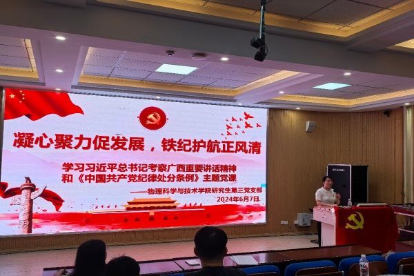 党建工作为提高支部成员的党性修养,积极开展党政工作,落实党内政策,必一·运动(B-Sports)官方网站与技术学院研究生第三党支部在2024年6月7日物理实验楼阶梯教室开展了学习习近平总书记广西考察重要讲话精神和《中国共产党纪律处分条例》主题党课。