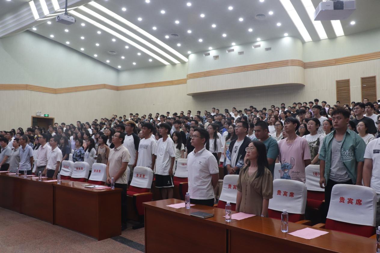 会议在激扬的国歌中拉开序幕,学院党委主要负责人上台致辞。他首先向2024级新生表示热烈欢迎,同时向新生介绍了学院历史沿革、学科建设、师资队伍、科研成果等基本情况,并对新同学提出了三点期望和要求:一是要格物穷理,勤学不怠,做好学业规划;二是要修身立德,友爱诚信,树立团队意识;三是要知行合一,执着坚守,努力追求卓越。