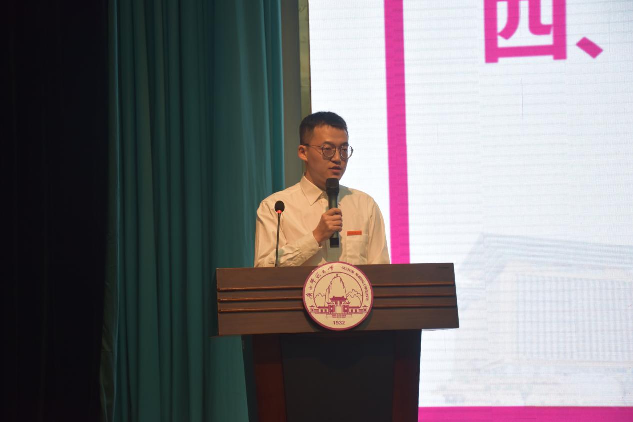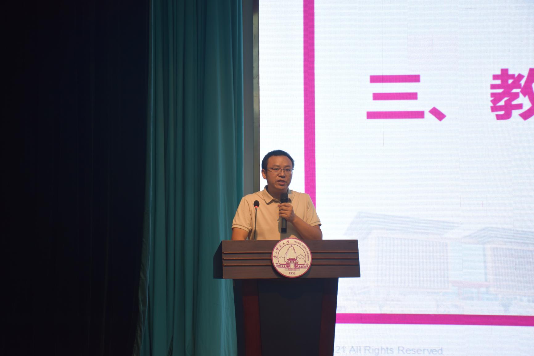 随后,由教师代表杜亮老师发言。杜亮老师对同学们给予殷切的期盼,希望同学们能志存高远,刻苦学习,全面发展,在求学过程中修身立德,厚植家国情怀,做一个全面发展的新时代青年。