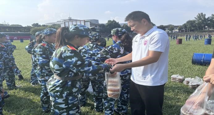 辅导员为军训优秀标兵颁奖