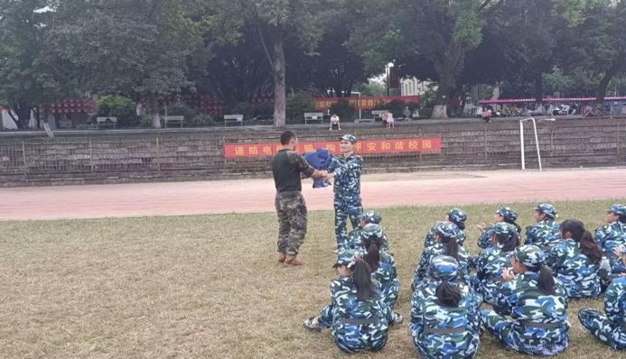 学生代表为教官献上鲜花