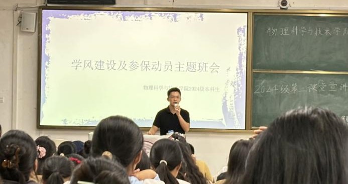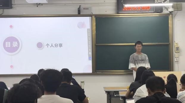 9月14号军训结束后,为落实学校晚自习要求,学院组织2024级本科生于理科楼开展晚自习活动。与此同时,学院组织新生利用第一节晚自习时间开展个人分享会,每位同学上台分享自己的家乡等内容。这一活动不仅有助于增强新生的自信心和讲台表达能力,还为他们提供了一个相互了解、增进友谊的平台,同时也在一定程度上磨练了他们的师范技能。