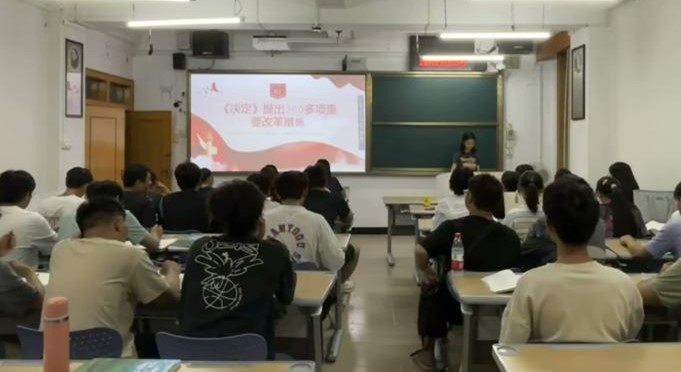 9月24号晚,为增强民族责任感和使命感,坚定学生理想信念,学院组织2024级本科生在理科实验楼601教室召开“学习党的二十届三中全会精神”团课。同时邀请学生代表主持开展“反校园欺凌”主题班会,促使学生们站在学生视角开展自我教育,通过本次活动同学们深入了解校园欺凌的危害性,增强学生法律意识和自我保护能力。
