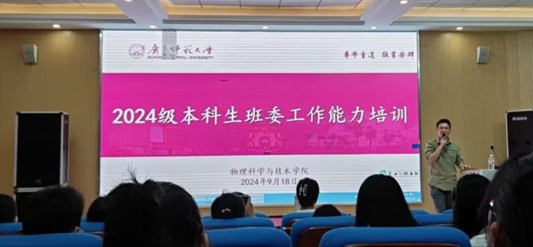 9月18号晚,为了提升班级管理水平,增强班干部的素质能力,学院组织开展2024级本科新生在实验楼阶梯教室开展班委工作能力提升培训。培训会上,24级本科生辅导员详细介绍了班委的职责,强调了班委在班级管理、活动组织等方面的作用,以及班风、学风建设的重要性。并邀请班委们积极参与讨论,提出自己的困惑。