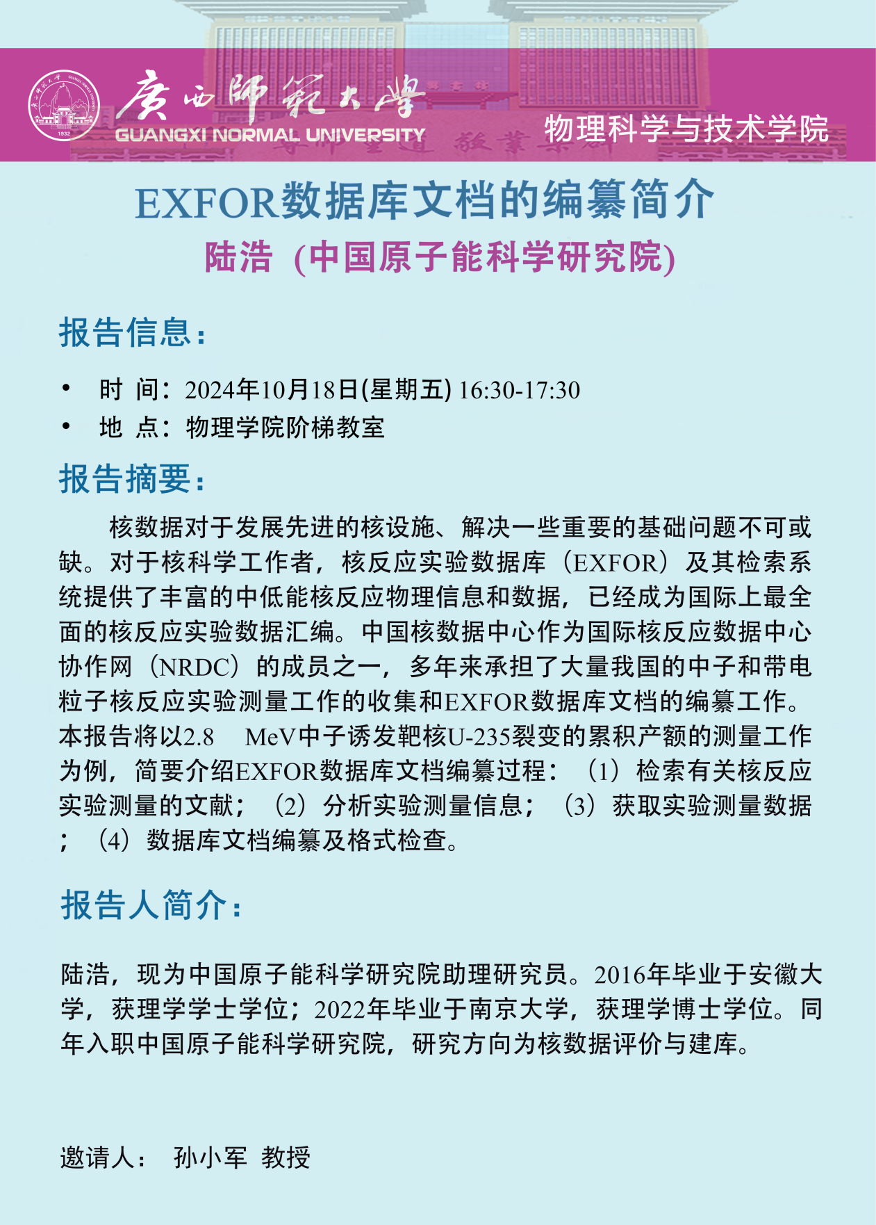 【学术预告】陆浩(中国原子能科学研究院):EXFOR数据库文档的编纂简介