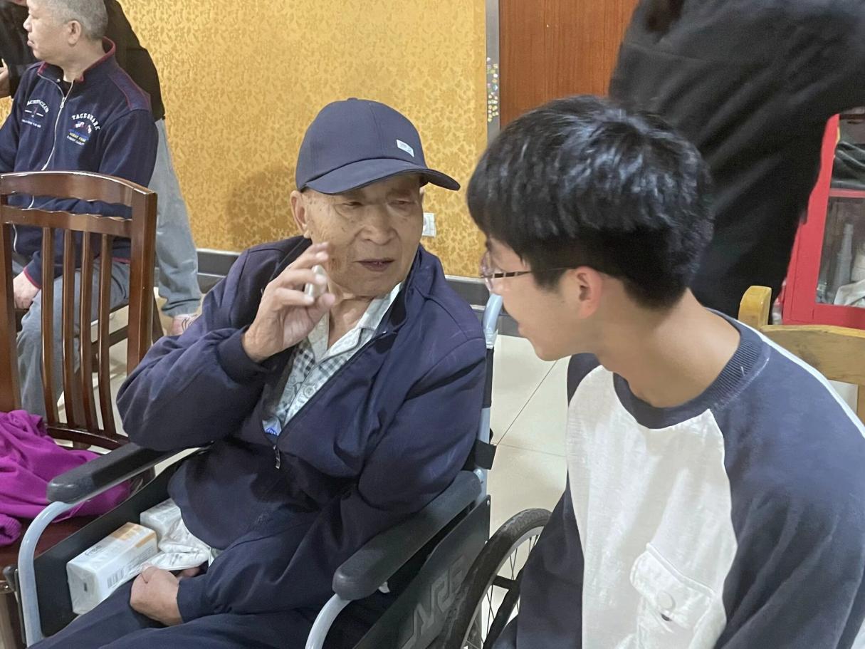 在活动过程中,志愿者们耐心教给敬老院的老人们生动有趣的手指操,还表演了《强军战歌》的大合唱以及自己排练的剧情,现场氛围热烈。值得惊喜的是,在志愿者表演结束后,敬老院的老人们也为志愿者们准备了节目,为志愿者们倾情演唱了《跨过鸭绿江》《地道战》等红色革命歌曲。在阵阵欢笑中,为敬老院增添了一份秋日的温暖。慰问演出后,志愿者们还为敬老院的老人们打扫了卫生,并前往三楼看望了腿脚不太方便的老人们,与老人们聊天谈心,为他们带去笑声与祝福。