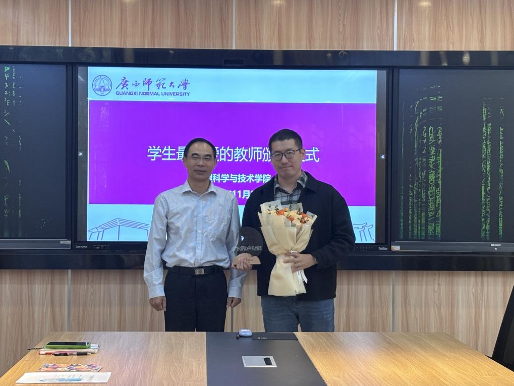 会上,学院党委主要负责人宣读了2024年度学校“学生最喜爱的教师”获奖名单,并为获奖教师颁发了奖牌。据悉,学校2024年度“学生最喜爱的教师”评选活动由广西师范大学学生会主办,坚持“学生最喜爱原则”,综合教师教育教学质量、纪律和师德师风情况,由学院学生民主投票产生。