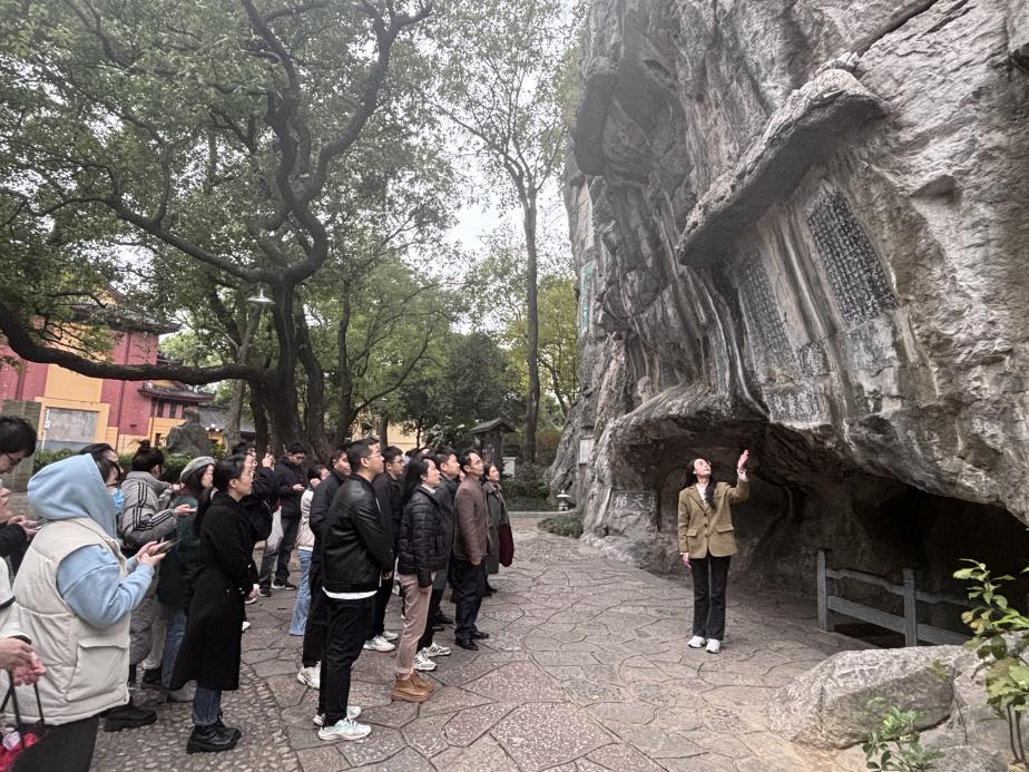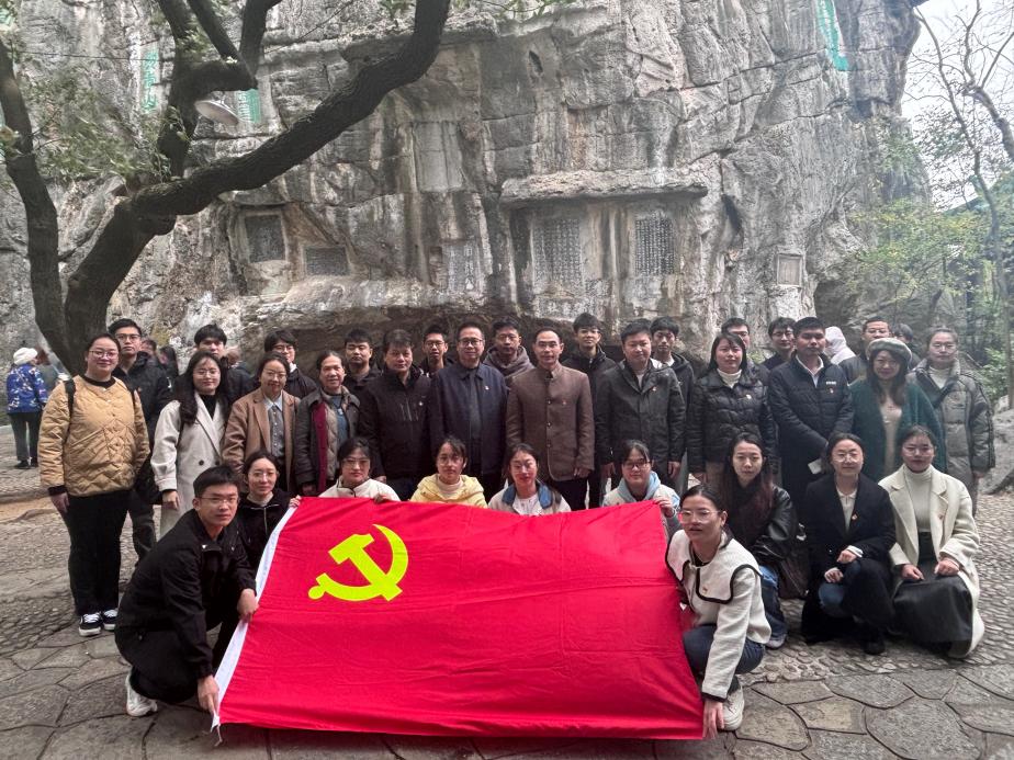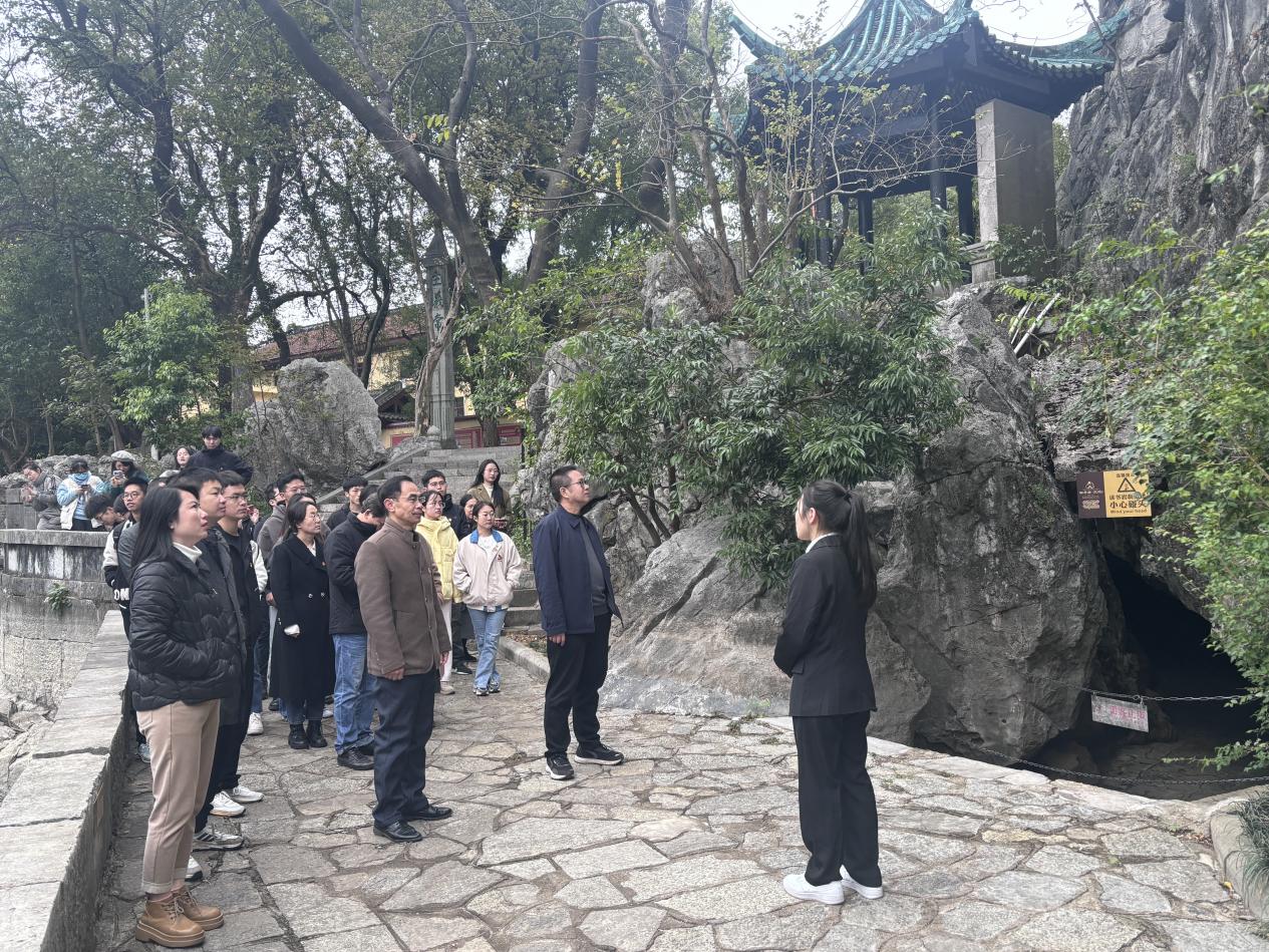 活动伊始,在讲解员的带领下,学院师生党员先后参观了“桂林山水甲天下”石刻、读书岩、孙中山纪念碑,聆听了南宋官员王正功清廉事迹,了解到“廉泉”的由来及其背后的故事。通过回顾历史故事,了解历史人物的生平,感受这些蕴藏在独秀峰下的中国传统“廉洁因子”,使学院师生党员对廉洁精神有了更为直观和深刻的理解。