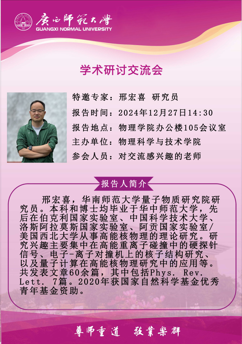 【学术研讨交流会预告】邢宏喜(华南师范大学量子物质研究院研究员)