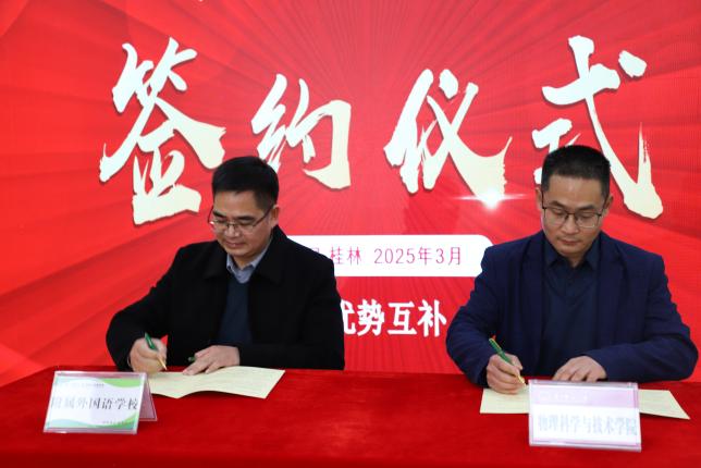 学院新闻2025年3月5日,必一·运动(B-Sports)官方网站(以下简称“物理学院”)与广西师范大学附属外国语学校(以下简称“附外”)在广西师范大学育才校区隆重举行合作协议签署仪式。物理学院院长、分管本科教学副院长及教师代表,与附外校长、书记、副校长及教师代表等共同出席活动。