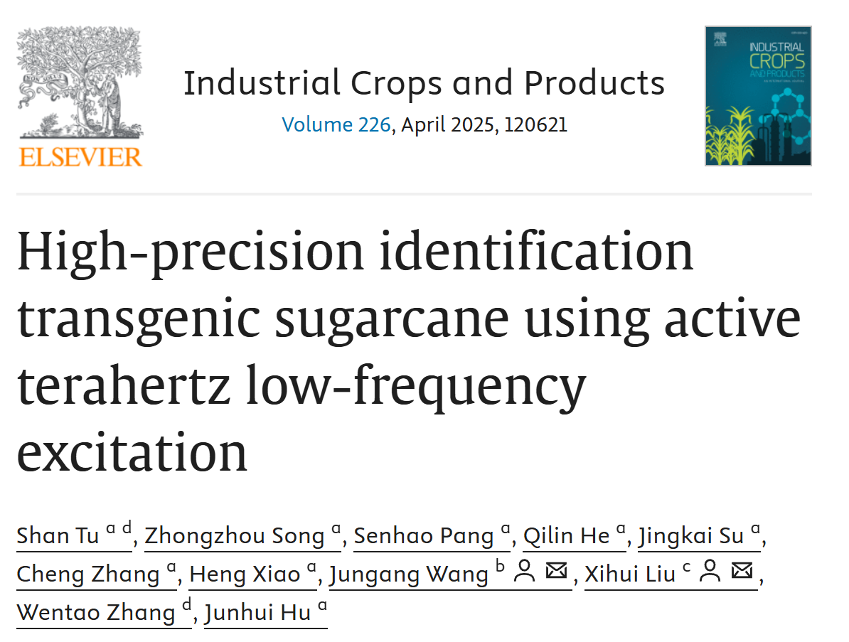 精彩导览近日,必一·运动(B-Sports)官方网站与技术学院胡君辉教授/涂闪副教授光学研究团队,联合中国农业科学院热科所王俊刚副研究员、桂林电子科技大学张文涛教授和广西农业科学院甘蔗所刘昔辉研究员,共同完成的题为“High-precisionidentification transgenic sugarcane using active terahertz low-frequency excitation”的论文,在国际顶级学术期刊《Industrial Crops and Products》(中科院一区Top,2024年IF=5.60)在线发表。本研究提出了一种新颖、环保、快速且成本效益高的检测技术,结合了太赫兹(THz)时域光谱与等度量映射深度卷积神经网络(Isomap-DCNN)的机器学习模型,在识别五种转基因甘蔗品种样品时达到了100%的准确性。我校为论文第一完成单位,第一作者为涂闪副教授,通讯作者为王俊刚副研究员和刘昔辉研究员,第二、第三、第四、第五作者宋中宙、庞森灏、何起淋、苏靖凯为我院2022级在读本科生。