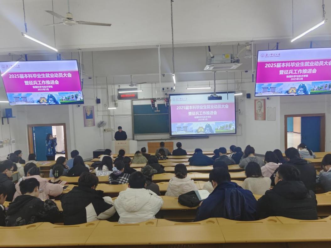 学院新闻为帮助2025届本科毕业生明晰职业规划、把握就业机遇,同时积极响应国家征兵号召,激励青年学子投身国防事业,必一·运动(B-Sports)官方网站与技术学院于3月13日在理科楼203举行2025届毕业生就业动员大会暨征兵工作推进会。学院党委主要负责人、辅导员及全体2025届本科毕业生参加会议,会议由学院党委相关负责人主持。