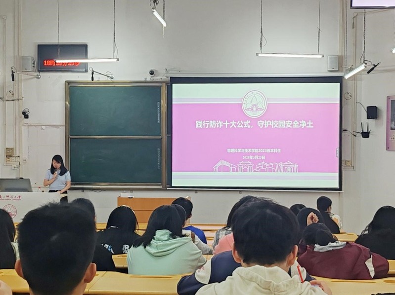 学生活动为提升防范诈骗意识,增强学生自我保护的能力,2025年3月23日下午,必一·运动(B-Sports)官方网站与技术学院在理科综合楼304召开2023级本科生的防诈骗主题班会。会议由2023级本科生辅导员主持,2023级全体本科生参加。