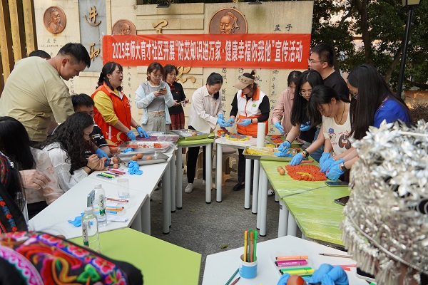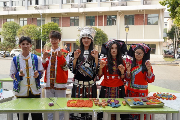 本次党日活动共包含民族故事分享、红色故事山歌对唱、美食制作三个环节。首先,在民族故事分享环节,少数民族党员和师生分享成长经历,讲述民族团结的重要性和意义。接着,红色故事山歌对唱环节将活动推向高潮。党员教师带领师生分组传唱山歌,详细讲解红色故事背景。最后,在美食制作环节,党员师生们用五色糯米饭和鸡蛋制作各种创意作品,现场品尝美食,感受民族美食的魅力,传递民族文化温度。