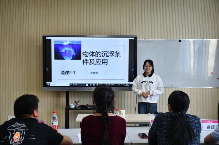 本次决赛从早上8点开始,内容涵盖教学设计、模拟授课等多个环节。在教学设计环节,选手们在有限时间内,根据主办方给的资料,现场进行教学设计并制作PPT。完成后进行抽签决定顺序,依次进行说课及模拟授课,并由评委们评分。在说课环节,选手们凭借他们富有感染力的教学语言以及有趣的教学手段,通过精心准备的教学设计和生动活泼的课堂展示,展现了各自的教学特色和创新理念,为评委和观众呈现了精彩纷呈的教学场景。