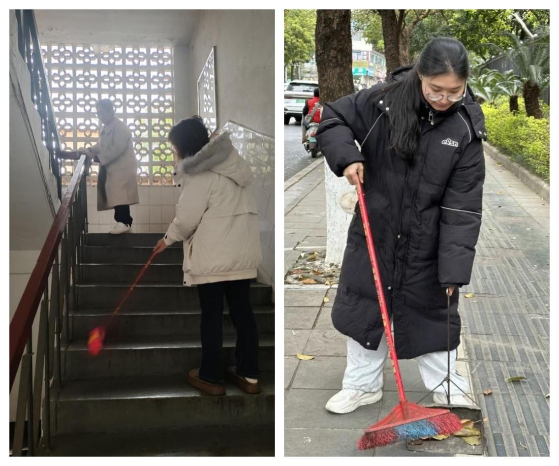 在活动月中,支部党员划分为若干小组,深入校园开展环境卫生整治工作。部分同志手持扫帚、垃圾袋,细致地清理教学楼周边绿化带内的纸屑、落叶等;其他同志则提着水桶、抹布,认真地擦拭楼梯扶手、宣传栏等公共设施。尽管天气寒冷,但大家热情高涨,忙碌的身影成为校园里一道温暖的风景线。
