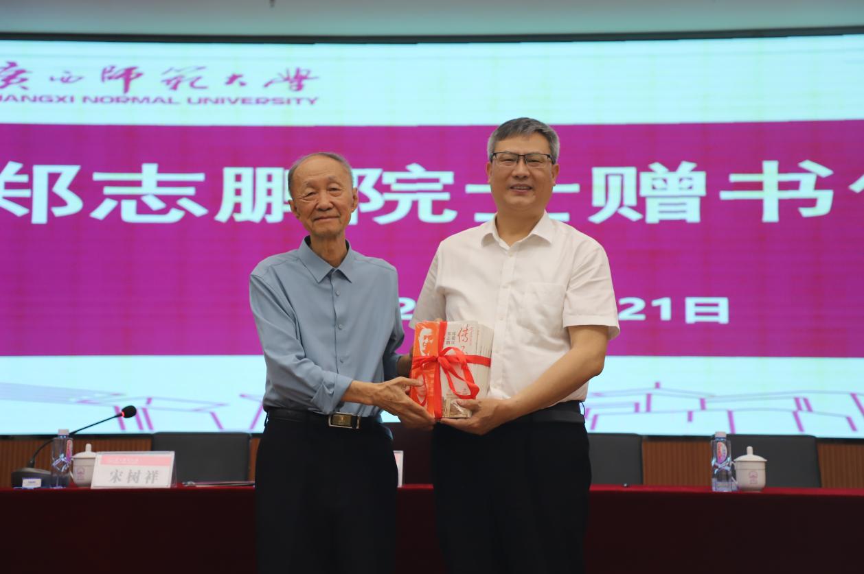 讲坛过程中,还举行了《传承——郑建宣、郑志鹏物理学家传》的赠书仪式,学校党委常委、副校长宋树祥代表学校受赠。