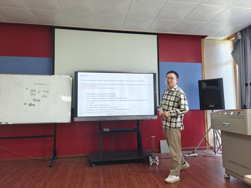 报告会伊始,主持人马鸿浩副教授简要介绍蒋军副教授的教育经历和科研经历。蒋军副教授主持两项国家自然科学基金,其中青年项目和面上项目各一项;在国内外主流期刊上发表SCI论文30余篇。报告会上,蒋军副教授全面分析了全重四夸克态作为紧致态和分子态在CEPC和Belle上的产生及其性质,为高能物理实验提供了宝贵的指导意见。