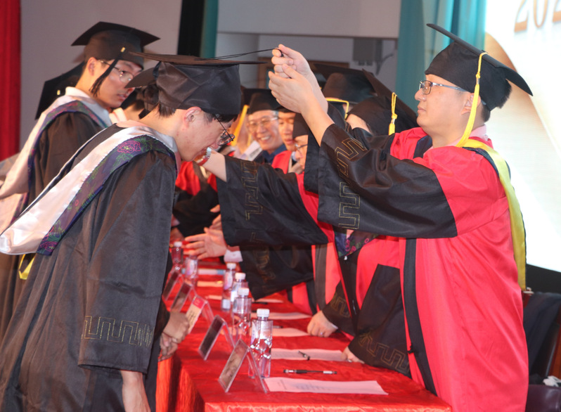 典礼期间,学院为57名考取中国科学院大学、中国海洋大学等高校硕士研究生的本科生颁发升学奖学金,勉励他们在新的求学阶段继续砥砺前行,追求卓越。师生互赠环节中,毕业生向导师献花致谢,学院回赠定制印章及纪念杯,寄托双向情谊。拨穗仪式上,导师们逐一为毕业生拨穗正冠,标志着学子从“求知者”向“践行者”的正式跨越。