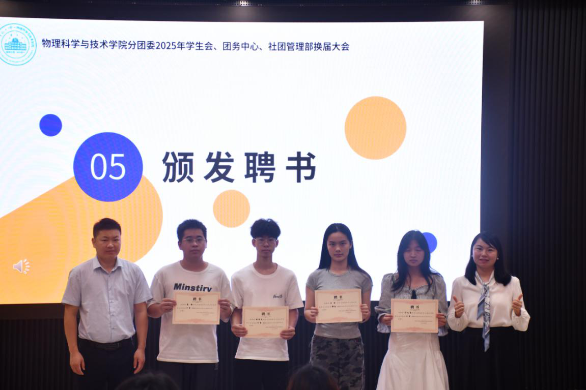 大会上,学院分团委书记柳莲君老师宣读换届名单,希望各位团委学生会新成员能满怀责任感与荣誉感,学习往届学生干部的处事态度和能力,吸纳他们的优点,发扬优良传统,期待学院会在新一届干部的带领下取得更大的成绩,创造更多精彩的“物院瞬间”。她希望大家能够积极支持和配合工作,积极主动地推动必一·运动(B-Sports)官方网站与技术学院的建设。