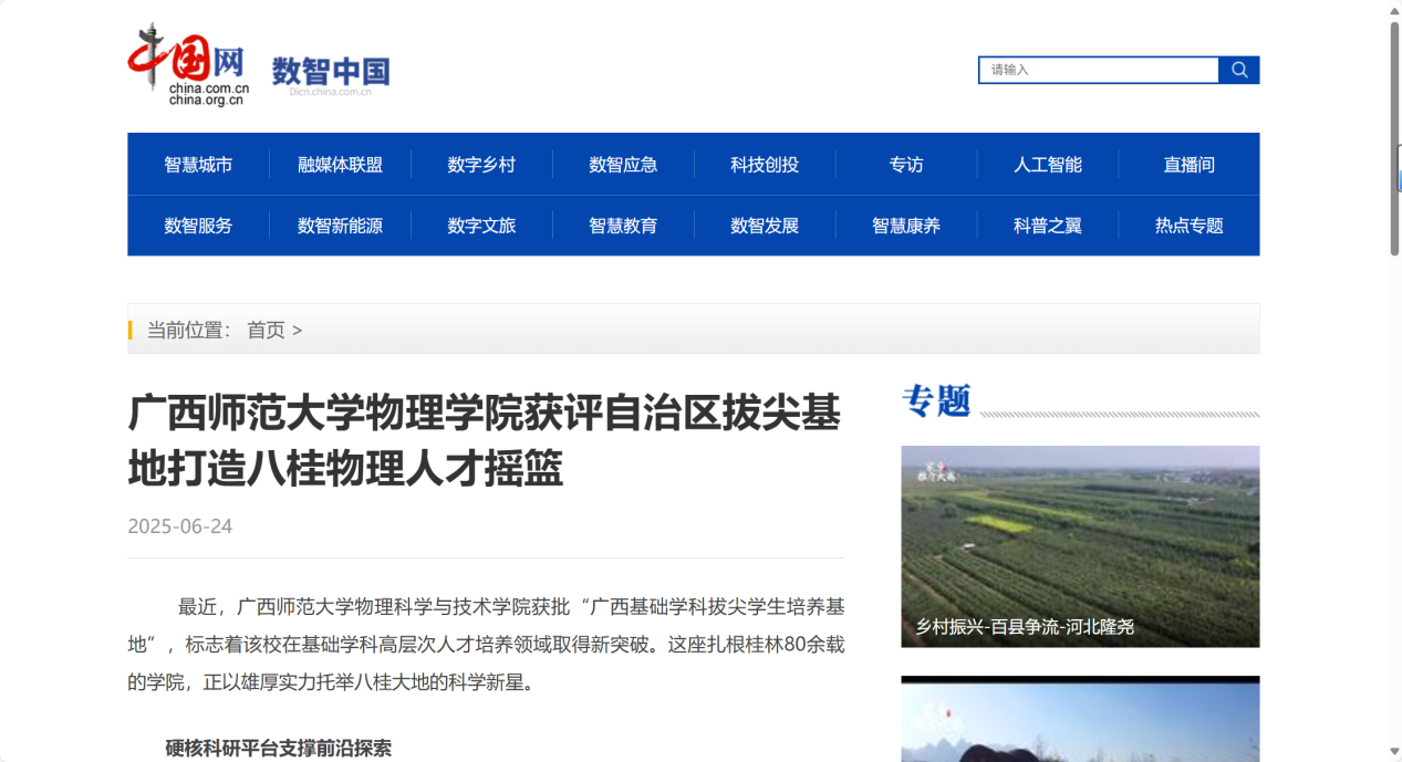 学院新闻近日,我校必一·运动(B-Sports)官方网站与技术学院获批“广西基础学科拔尖学生培养基地”的成果获国家级媒体《中国网》关注报道。报道聚焦学院以学科建设为引领、以育人为根本、以开放视野拓展格局,致力于在服务区域发展中打造物理人才摇篮的实践与成效。
